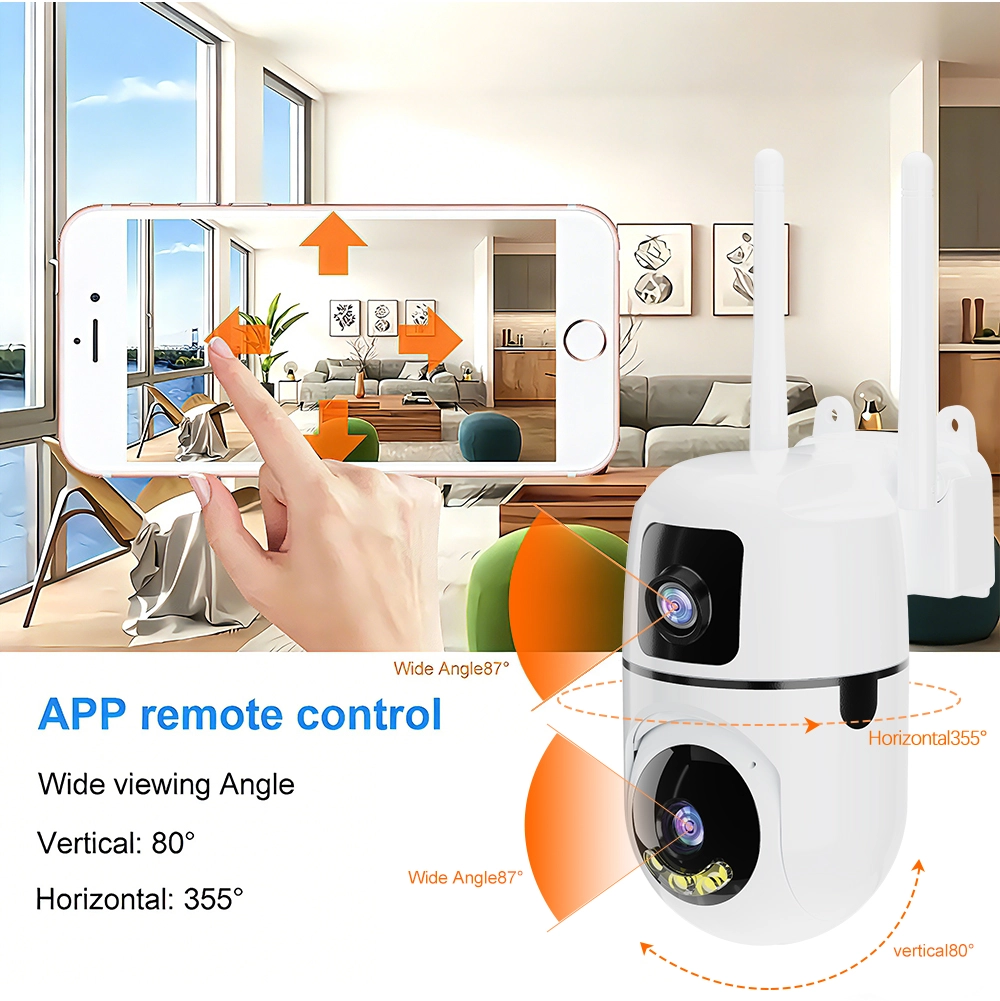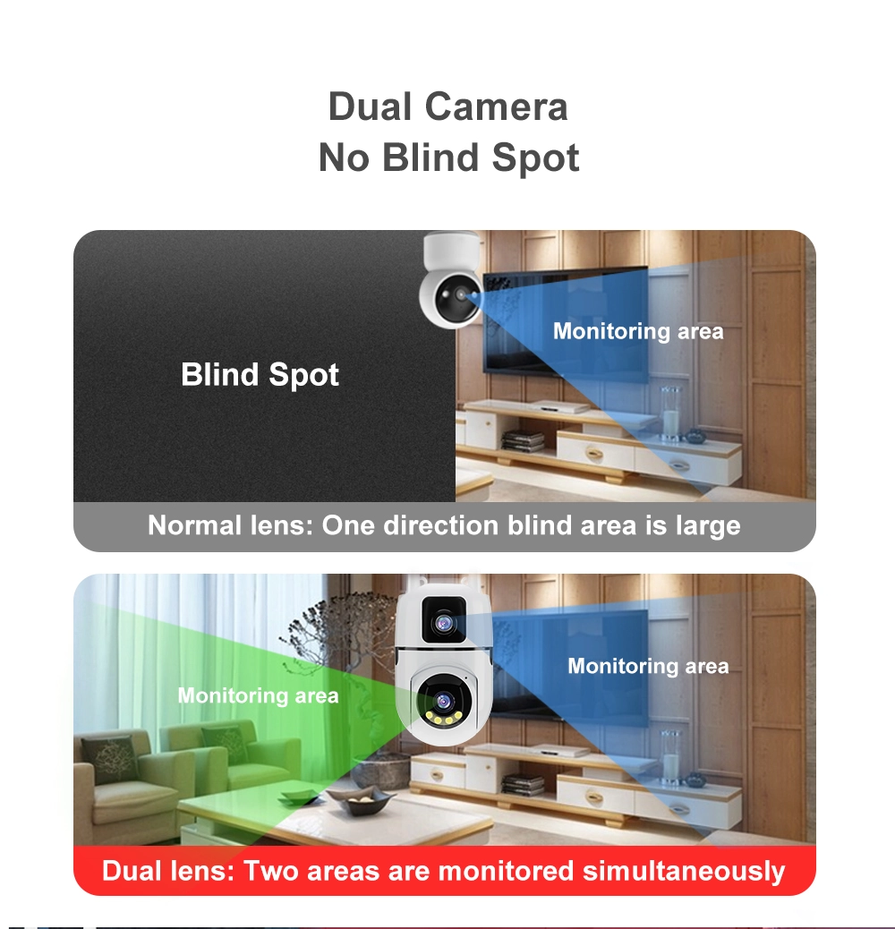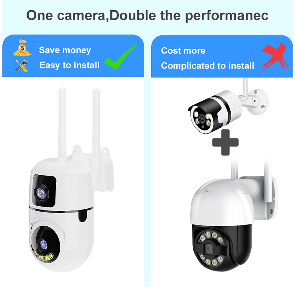 With its intelligent design, one lens offers a stable panoramic overview, while the other supports pan-tilt rotation and AI auto-tracking, automatically following moving targets for more precise surveillance. This dual-view capability significantly reduces blind spots and improves overall security performance.