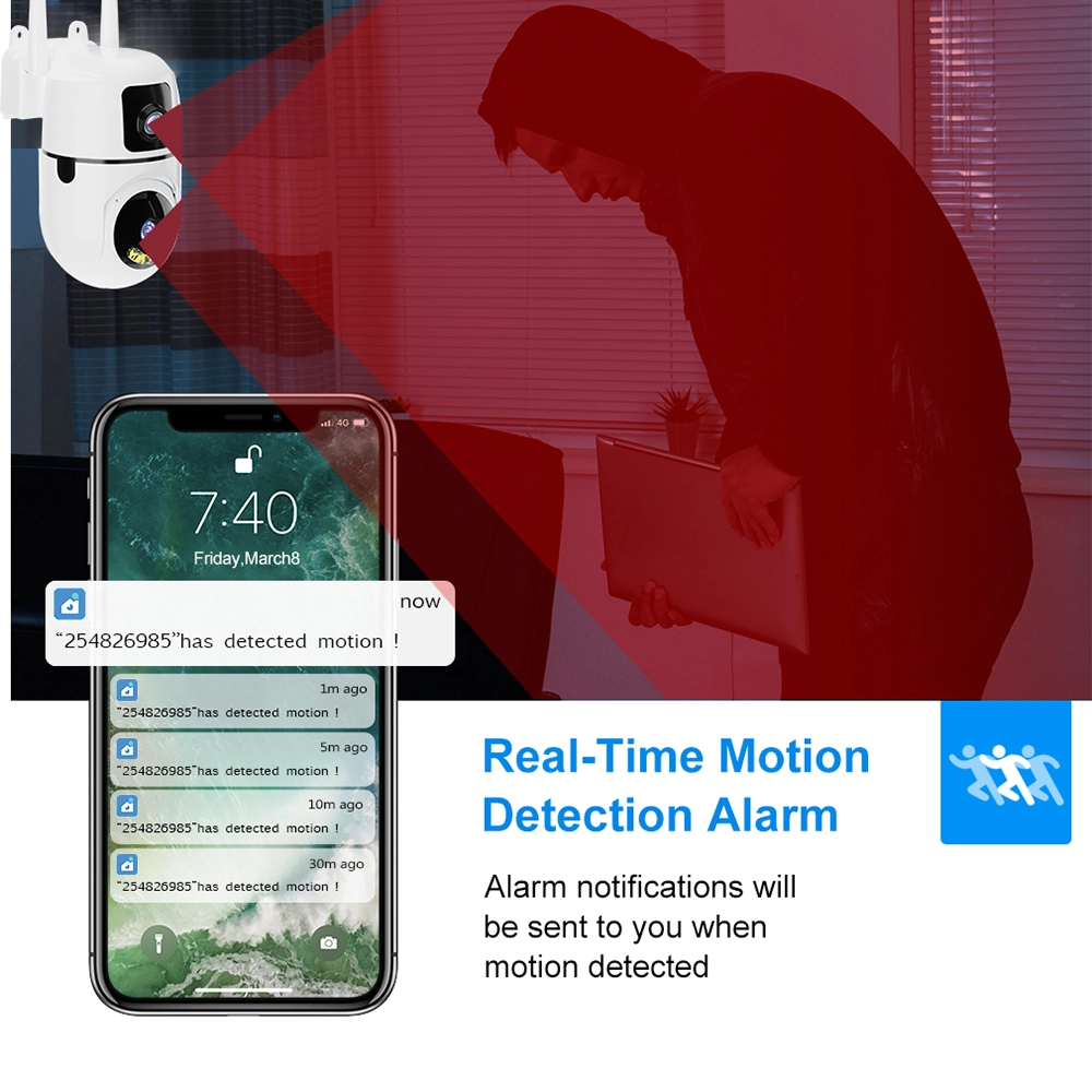 Equipped with AI humanoid detection, the camera can accurately distinguish human movement and send real-time alerts to your mobile device. Whether it’s for home or business use, you’ll receive instant notifications, snapshots, or video recordings whenever motion is detected.